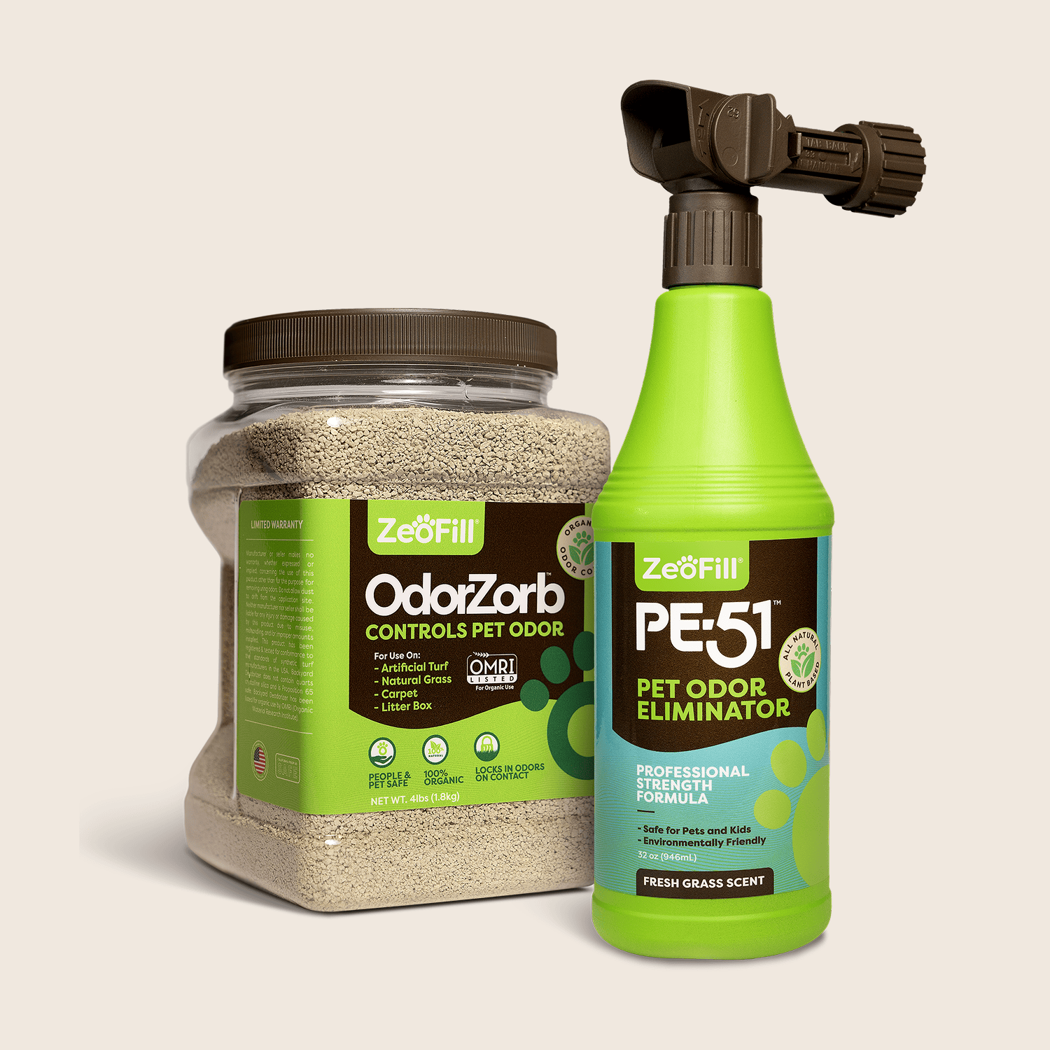 The ZeoFill Starter Pack is your all-in-one solution for fresher, cleaner turf. Together, PE-51, OdorZorb, and our easy-use spray nozzle eliminate odors, cool your yard, and keep it safe for pets and kids.